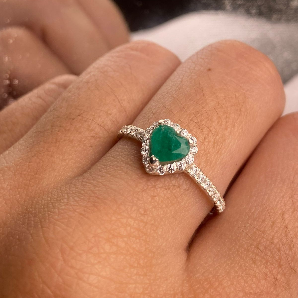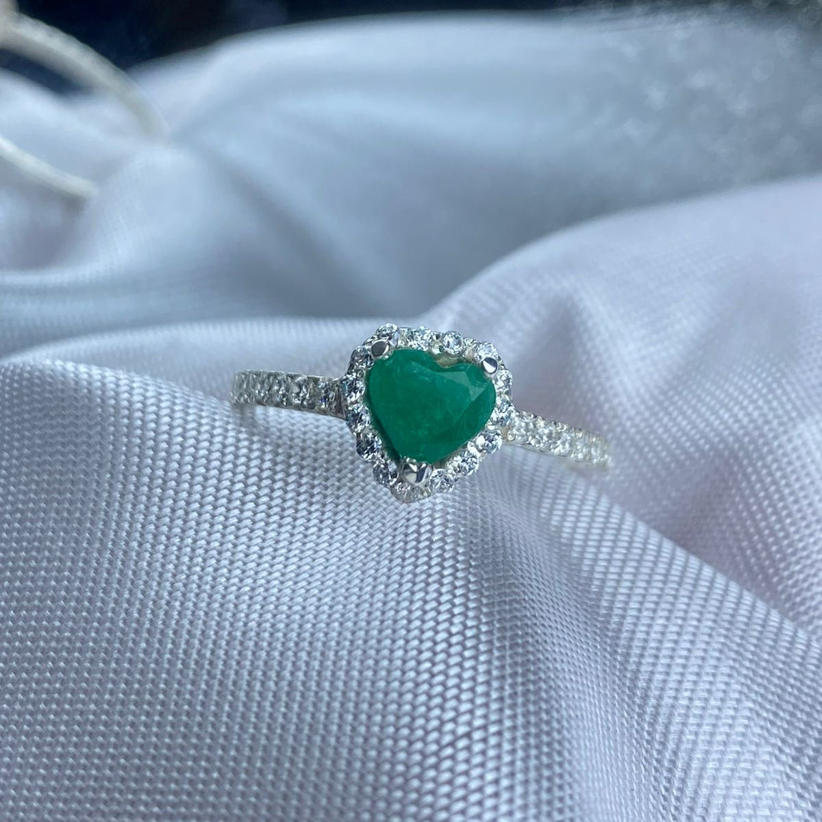 Anillo en plata ley 950, con esmeralda tallado corazón, (ESMERALDA NATURAL) alrededor circones de alto brillo - 8 días hábiles de fabricación - envíos a todo Colombia - todas las tallas disponibles.
