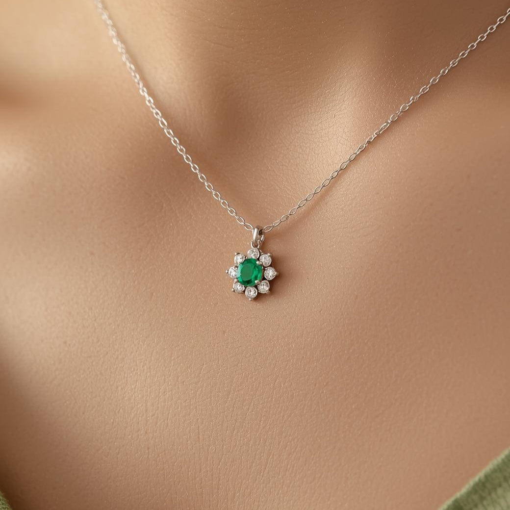 Cadena en plata Ley 950 + DIJE + esmeraldas natural tallado REDONDO, 1.5mm - circones alrededor, se entregan con estuche garantía y certificado de la esmeralda.