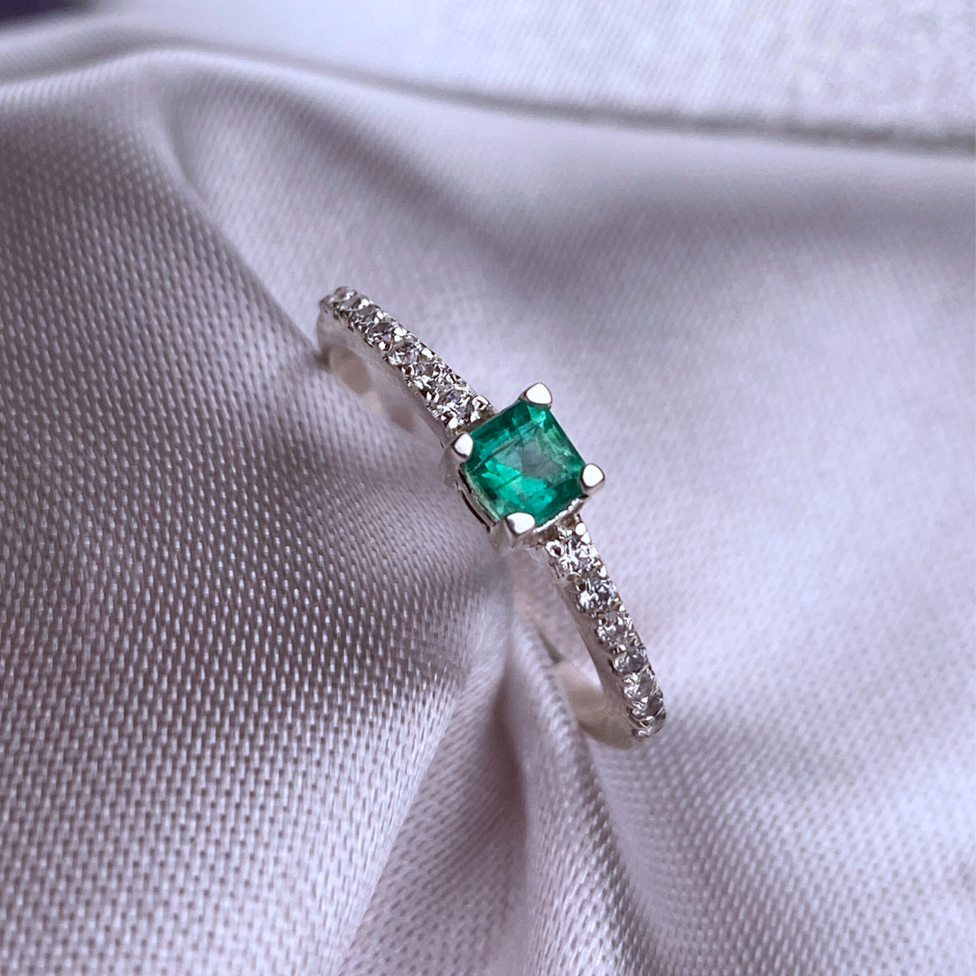 Anillo en plata ley 950, con esmeralda natural cuadrada, alrededor circones de alto brillo - 8 días hábiles de fabricación - envíos a todo Colombia - todas las tallas disponibles. TALLAS 4 - 10 Si deseas una talla por fuera de las establecidas, debes realizar la modificación vía WhatsApp