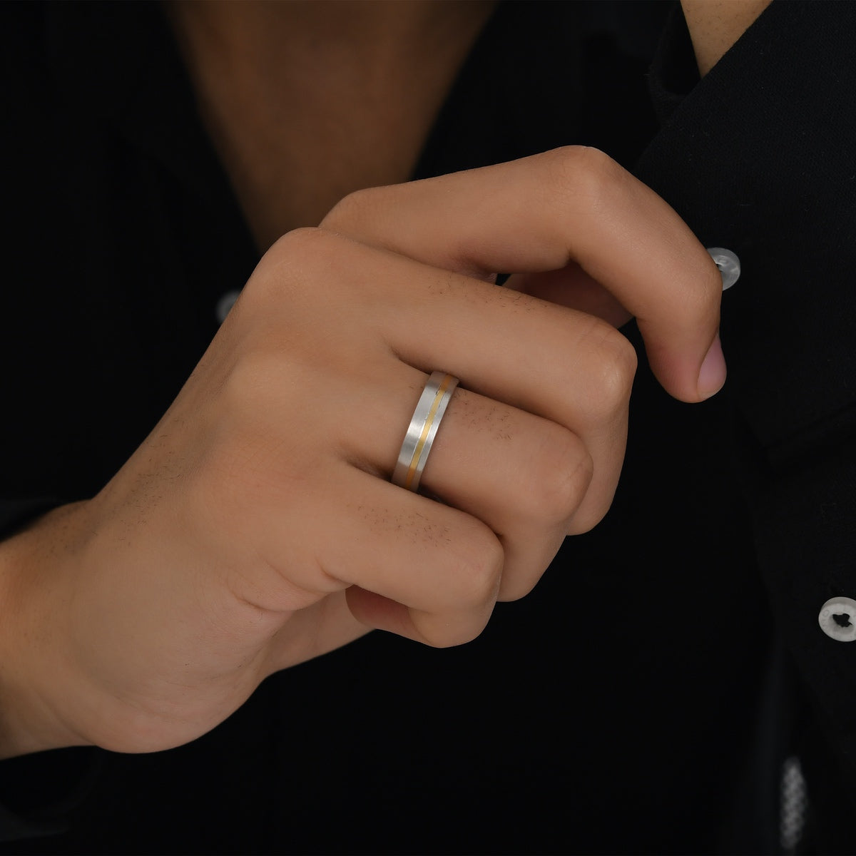 Argollas en Plata 950 con detalles en Oro 18 kilates. Fabricables en tallas 5 a 11. Las tallas 12 y 13 aumentan el valor de las argollas, Incluyen; estuche 🎁, grabado laser, arras y garantía de por vida ✅. 1.5 grm de Oro aproximadamente.